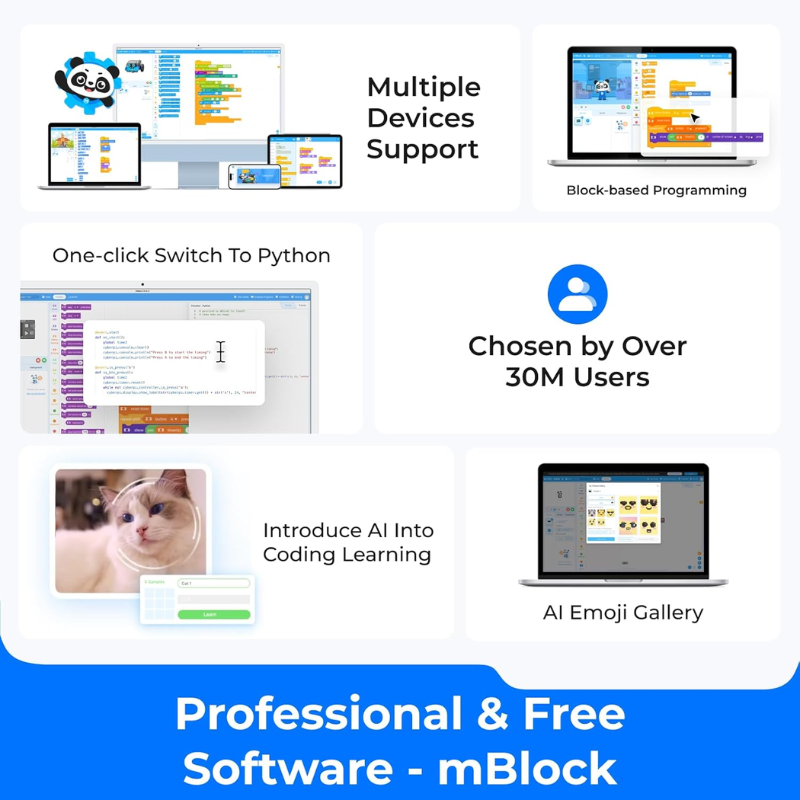 - Gesture Control: Code from scratch, play with the sensors, and customize the mBot2 Rover’s unique responses.